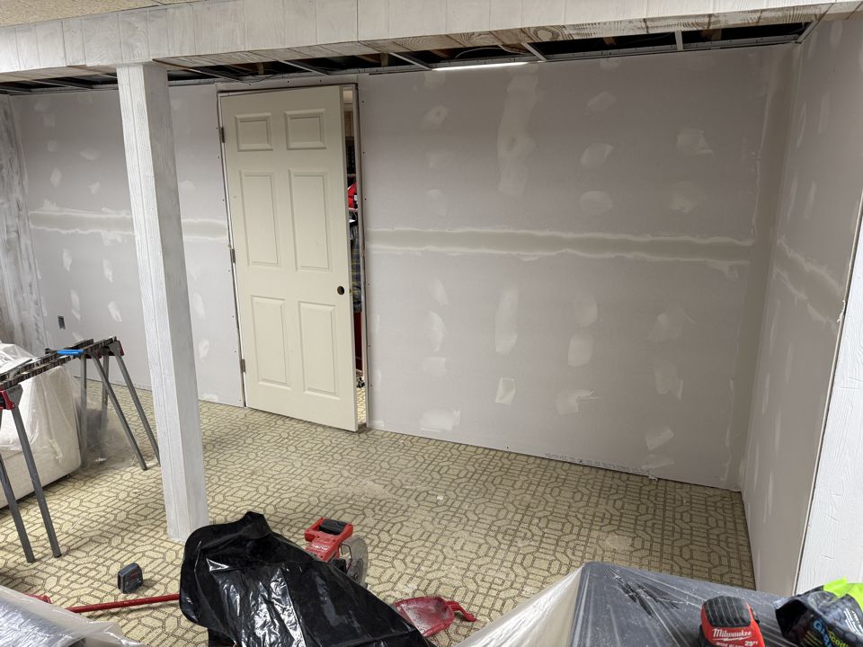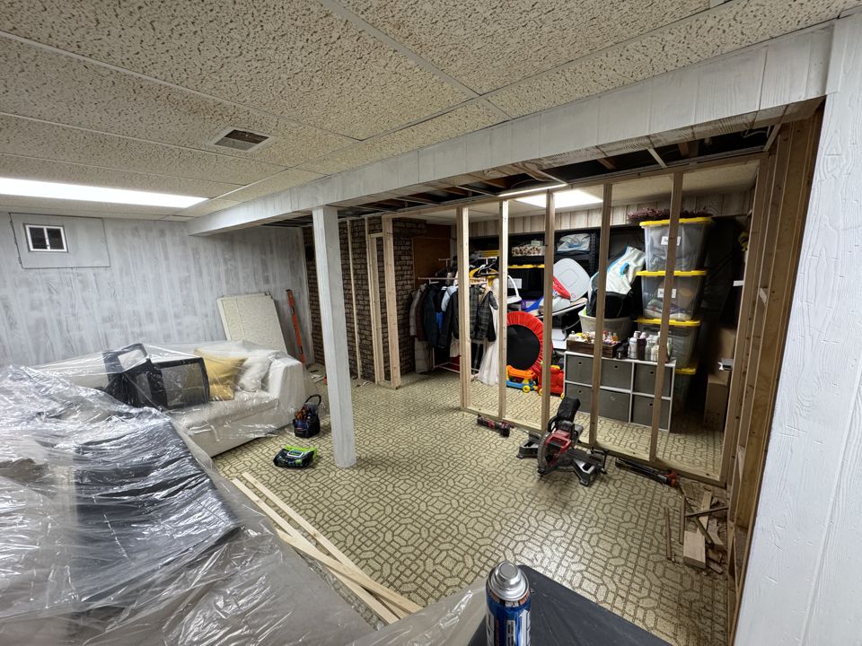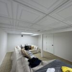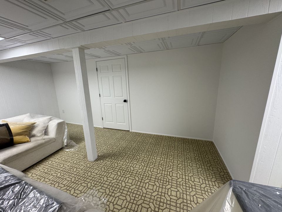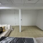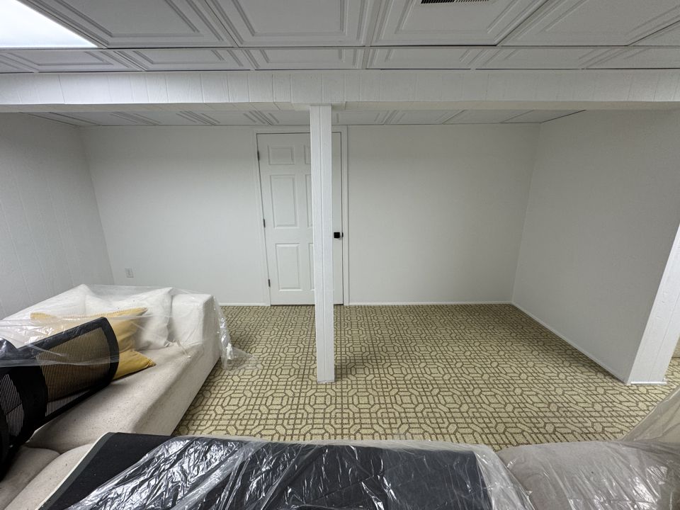 In this project, we helped a homeowner maximize their lower level by installing a strategic dividing wall. This addition effectively split a large, open basement into two distinct areas: a dedicated, tucked-away storage zone and a polished, inviting living space. To complete the transformation, we replaced the dated ceiling with high-quality tiles, brightening the entire room and giving it a professional, “new build” feel.